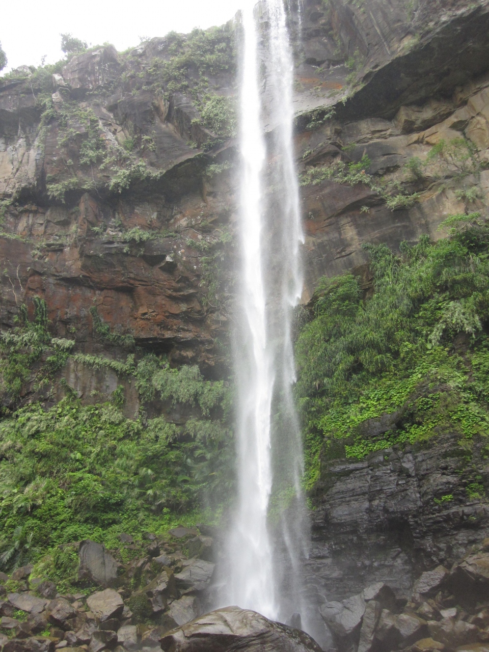那智の大滝は、日本三名滝に数えられているとのことです。背景の岩肌の美しさに、流れ落ちる水しぶきの上がり方、全体がすばらしいです。入場料を払うと滝の真下の辺りまで行て、舞台のような場所から、見上げられます。