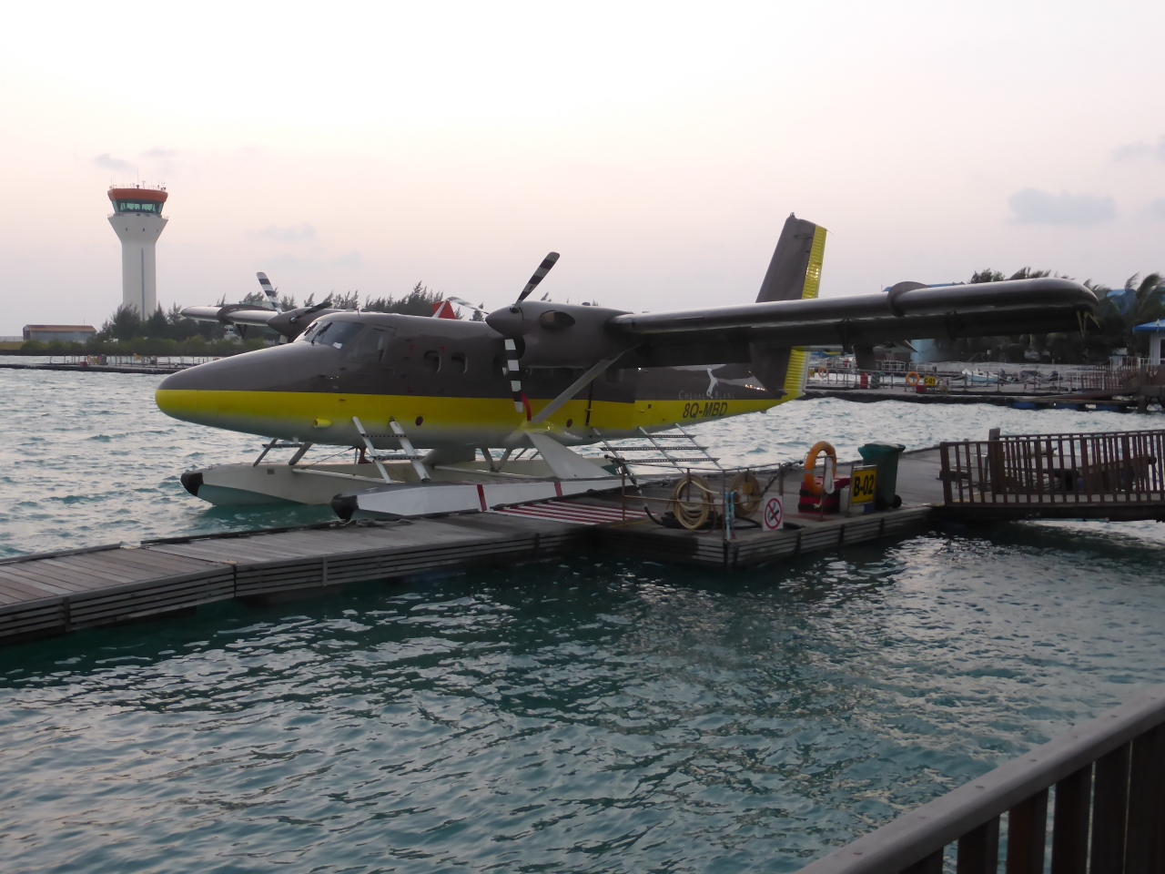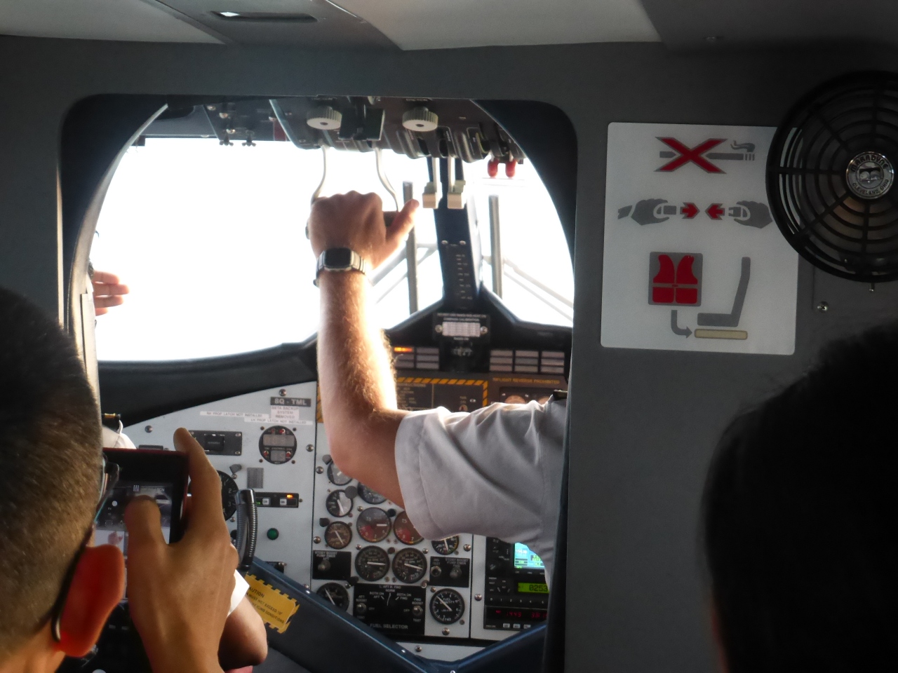 モルディブの空港島からフィリテヨまで往復しました。国内線の水上小型機です。キャプテン、副操縦士のほかにクルーが3人ほど乗り込んでいます。