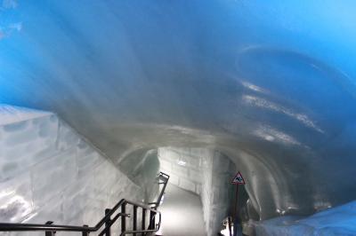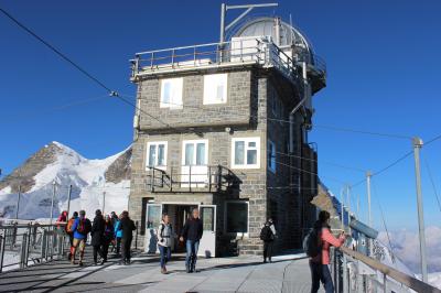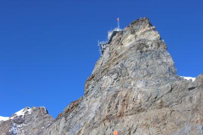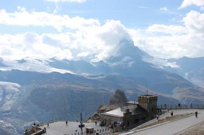 朝8時、営業開始とともにゴンドラに乗り込みました。所要時間は1時間です。麓から見たら晴れていたのに到着したら霧で何も見えません。天候が悪いととても寒く、カフェも混雑し、ビデオシアターで寒さに震えたりしながら粘ってみたけれど、マッターホルンは雲の中でした。