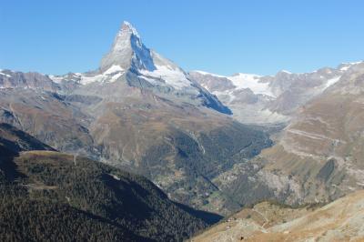 ブラウヘルトからゆっくり歩いて30分。大きな池です。周囲を歩きながらいろいろな角度から撮影を楽しめますが、何といっても水面に映るマッターホルンは最高です。少しだけ手間をかけて、歩いてきたから見られるのも、逆に嬉しい気持ちになります。帰路はスネガまで1時間のハイキングを楽しみました。