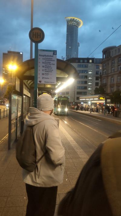 フランクフルト中央駅には13分の遅れで到着です。19時前です。