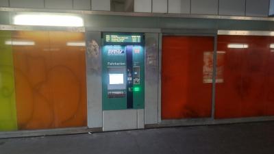 通路の壁に券売機が埋め込まれていました。空港まで6.6ユーロです。機械...