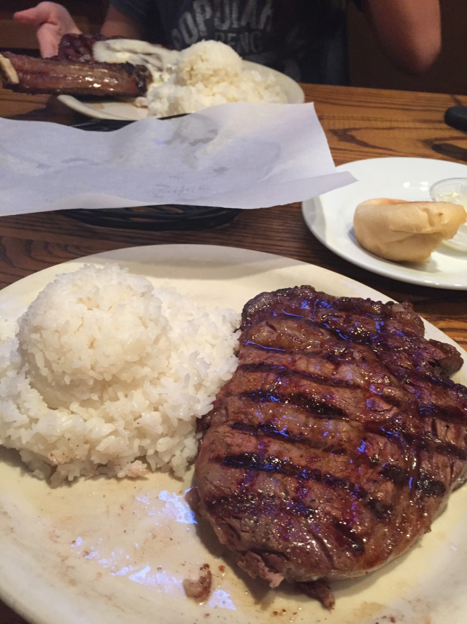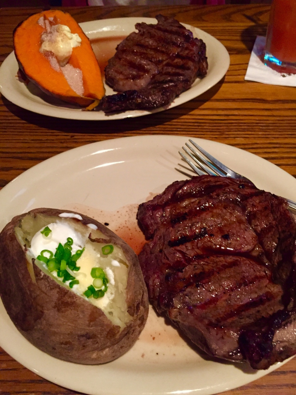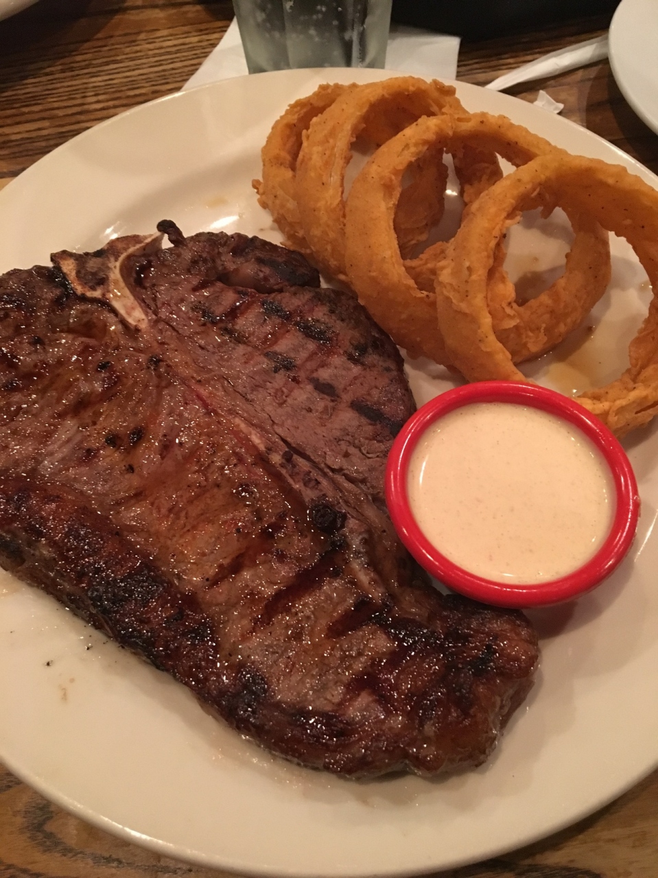テキサスリブアイ、柔らかくて美味しかったです。担当にもよりますがall English、スペシャルソースを勧められてしっかりお金を取られてしまいました(10ドルぐらい)。塩、こしょう、フィナデニソースで十分美味しかったのに。英語が出来ないとダメだなぁと思いました(笑)