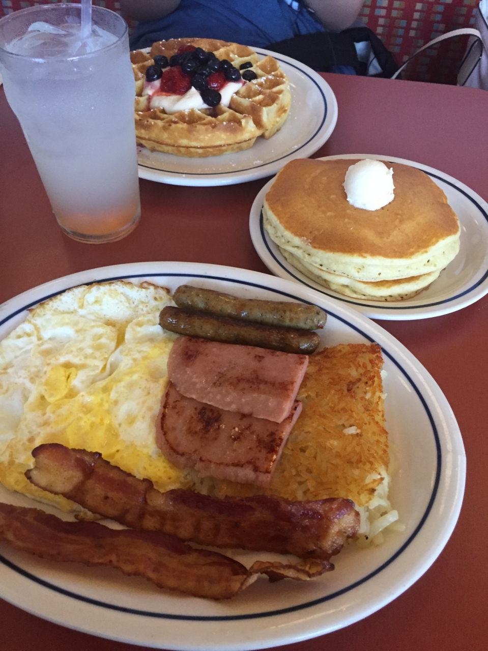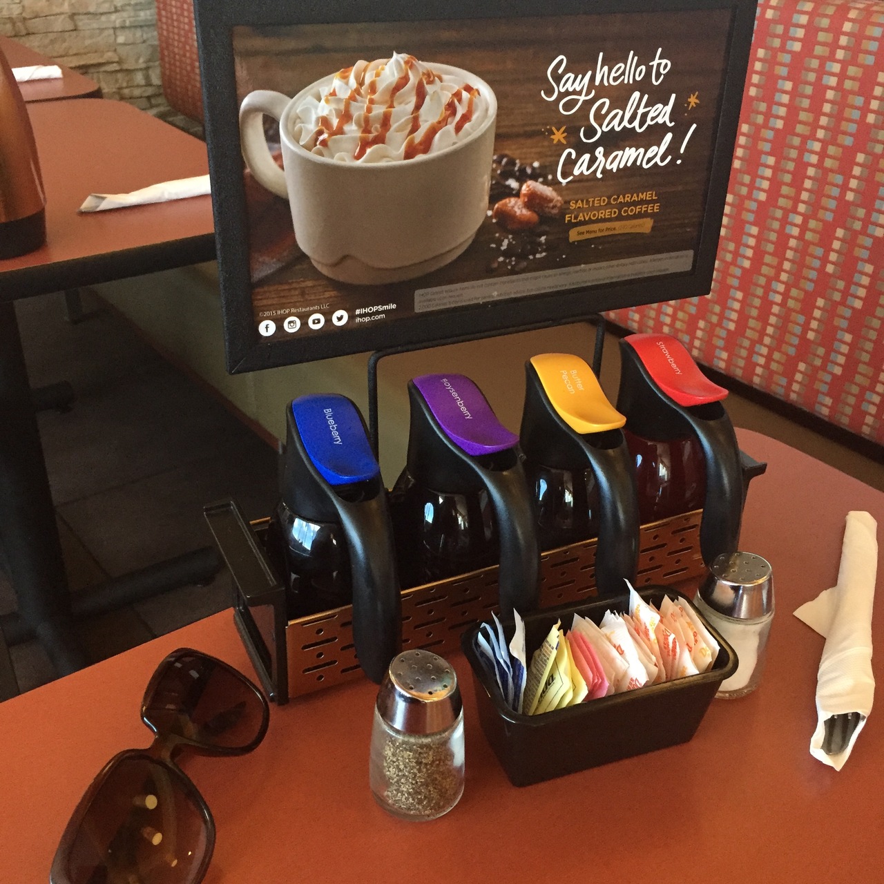 パンケーキのシロップが4種類あるのもいいですよね。バターピーカンがお気に入り、後はベリー系3種です。グアムのファミレスはハッシュポテトが美味しくて必ず注文してしまいます。- 旅行時期