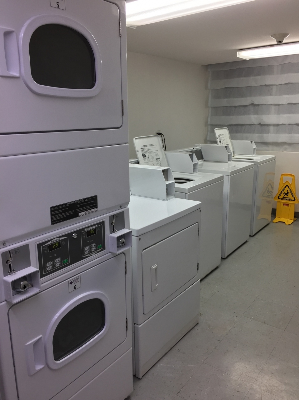 2階にコインランドリーがあって、洗濯、乾燥機、各2.25ドルです。
