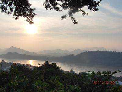 大きな期待もなく街近くだったから登ってみましたが、夕暮れ時の太陽の色に感激しました。真赤な夕焼け空はマレーシアで見ましたがルアンパバーンは真オレンジ色でどこか慈悲を感じます。