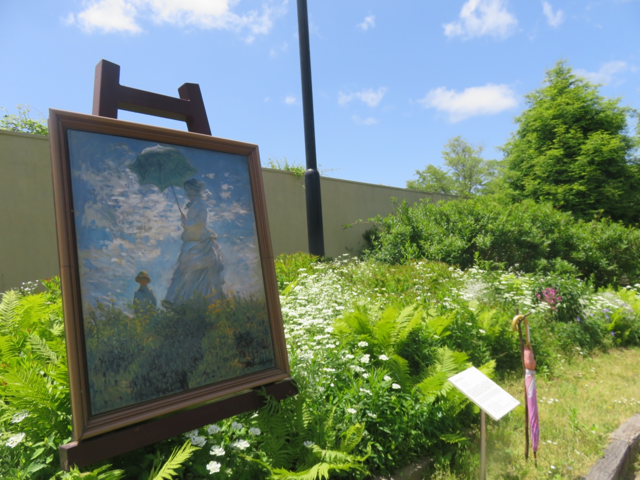 6月に入っていたが五月晴れの好天気で、人出も少なくゆったりと回ることができました。様々な草花に満ちていて幸せな気分にひたれました。随所に配置された印象派画家の陶板画はまるでギャラリーにいるようで感動でした。とくにモネの「日傘の女」はその場で女性に出会ったようでときめきさえ覚えました。ただ、時期的なズレは生じてしまうので、この日はバラやシャクナゲがマッチしていなくて少し残念でした。真冬になったらどうなるのか、気になるところではあります。