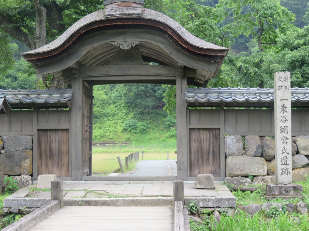 福井市郊外一乗谷。400年前戦国時代、この地に移った朝倉氏が築いた城下町だが、織田信長の焼き討ちに会い滅ぼされ、この地は土に埋もれたままとなっていた。1967(昭和42)年以来の発掘調査により当時の様子が明らかになってきた。現在は武家屋敷などが復元され観光スポットとなっている。発掘調査は現在も続けられ近くには資料館があるが、5年後には新しい博物館が完成するという。訪れた日(7月9日)は曇り空で蒸し暑く観光客もまばらだったが、5月のGWは列をなす人出だったとか。それにしても豊に栄えた城下町を焼き払うとは、いかにも信長らしく残虐な行為であった。