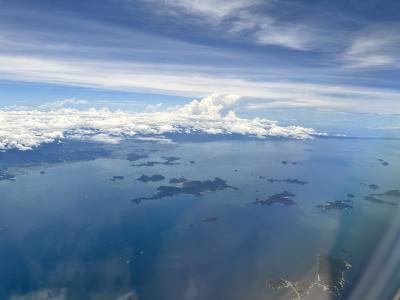 名古屋・セントレア空港から石垣空港に向けて出発、機内の景色からは南国の島々を見ることもできてなかなか楽しいです。