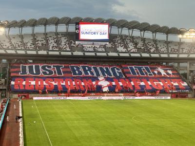 アクセスも悪くアウェイ側には非常に厳しいスタジアム、日本では少ないタイプ、それはそれで楽しいのですが、勝てれば。