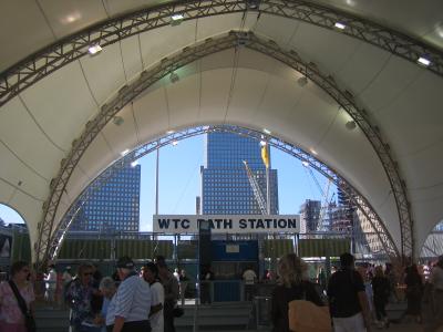 ワールドトレードセンター跡地前には、看板に多くの犠牲者の名前が。