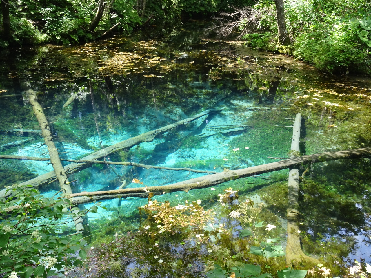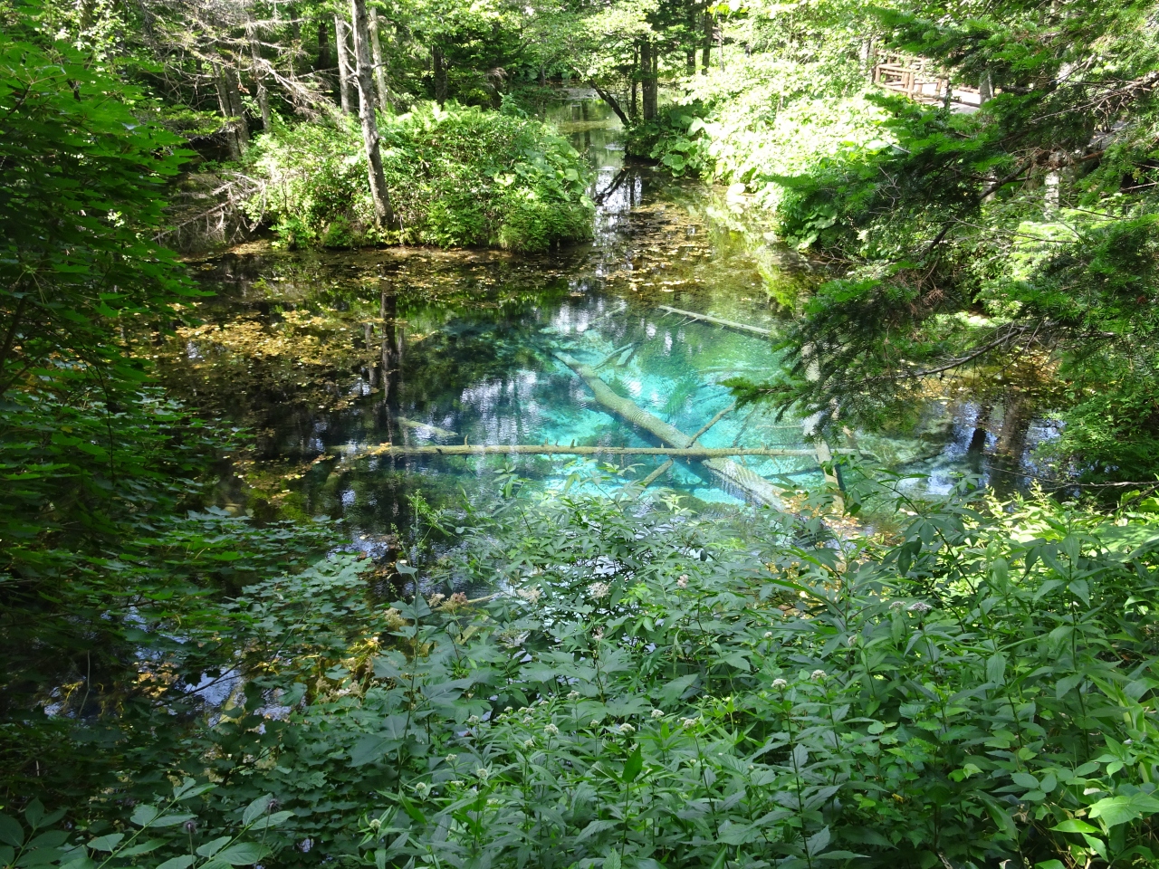 道道1115号線より砂利道を2㎞程度走るのですが、道道から入る標識を見落としそうになること、砂利道は対向車が巻き上げる埃に気を付けなければなりませんが、その先には神秘的なコバルトブルーの池が待っています。
