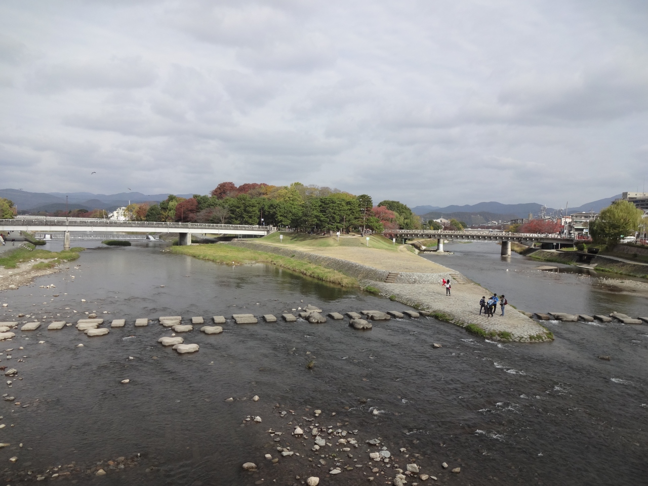紅葉を求めて秋の京都へ~京阪出町柳駅を出るとそこには鴨川の景色が見られます。