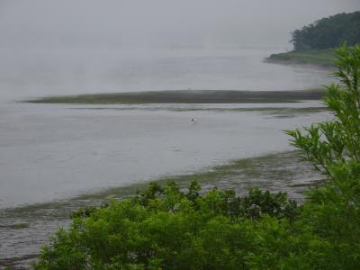 7月下旬でしたが、夕方になると気温も下がり肌寒く感じるようになっていました。水温のほうが高いのでしょうか、もやがかかった状態になってきました。