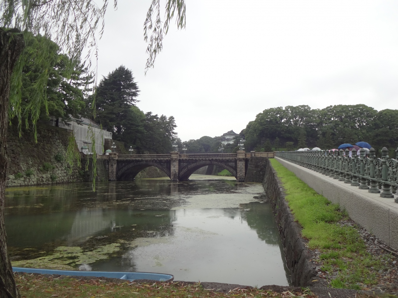 皇居東御苑より徒歩で二重橋へ向かいましたが、たくさんの観光客です。特に中国や韓国からと思われる人々が群がっています。この群衆でここが二重橋と認識できた次第です。
