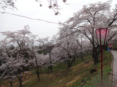 - 雨の中でも2000本の桜は、満開を迎えており絶景でした。