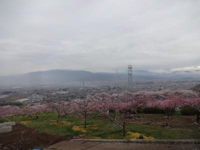 しかしながら、当日は雨のち曇予報でしたが、午後も雨が降りやみません。甲府盆地や富士山、八ヶ岳を観ることはできませんでしたが、ほぼ満開の桜は絶景でした。