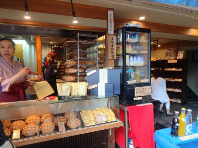 土曜日の午後、雨が降っていましたが、たくさんの観光客が訪れています。昔ながらの商店街では珍しい光景に映りました。