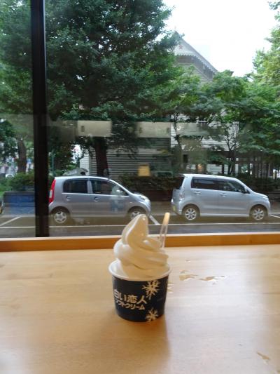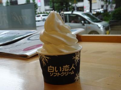 札幌時計台からテレビ塔へ向かおうとした際に、「白い恋人ソフトクリーム」の幟を発見! 吸い寄せられるように店の中へ。