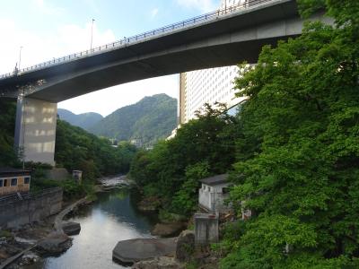 定山渓温泉に宿をとったので、少しは散策しようと考え、チェックイン後すぐにホテルの草履のまま渓谷内へ。