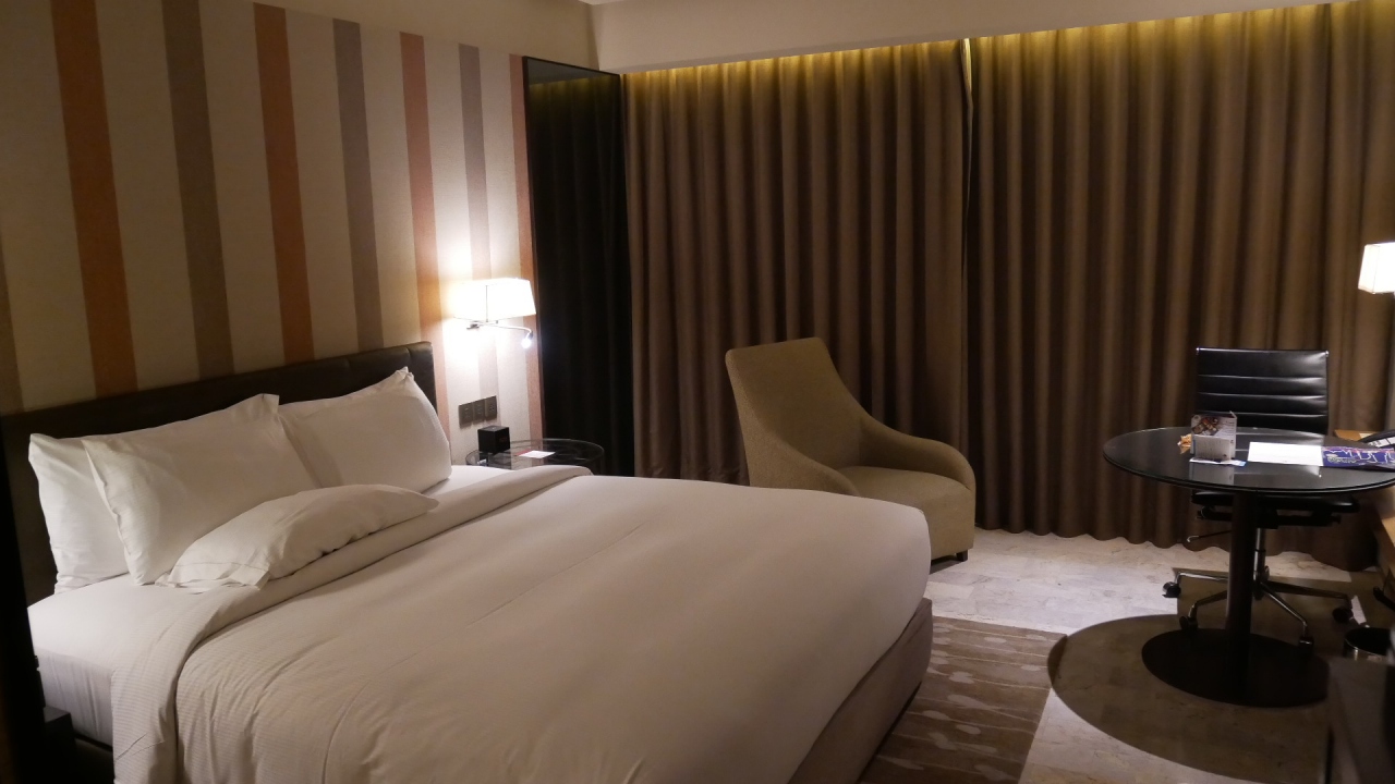 最安のKING HILTON DELUXE ROOMでの予約でしたが、 最上階エグゼクティブラウンジのある7階の部屋にアップグレードされました。ヒルトンゴールドの威力ですかね。