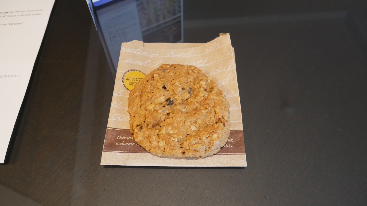 ダブルツリー名物の大きなクッキーは、早朝、朝食前に出発するときは、小腹を満たすことが出来て重宝します。