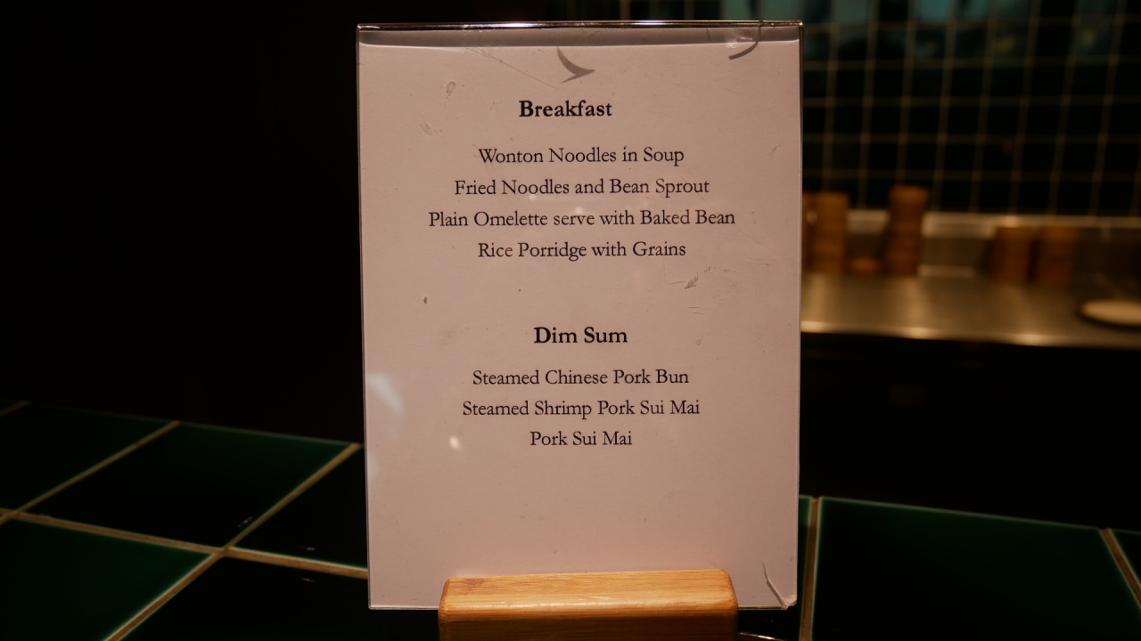 ヌードルバーでは、朝食4品、点心3品が提供されていました。