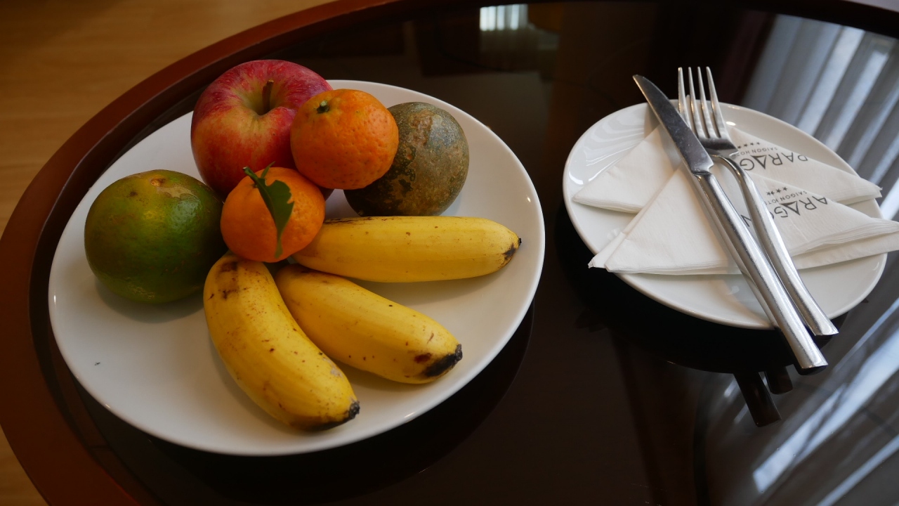 フロントは作り直したようです。対応も良くなっていて、ウエルカムドリンク+フルーツを頂けました。