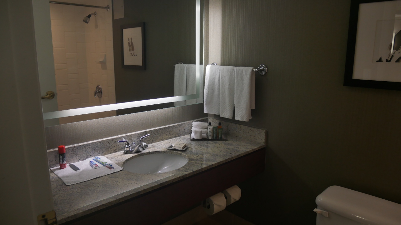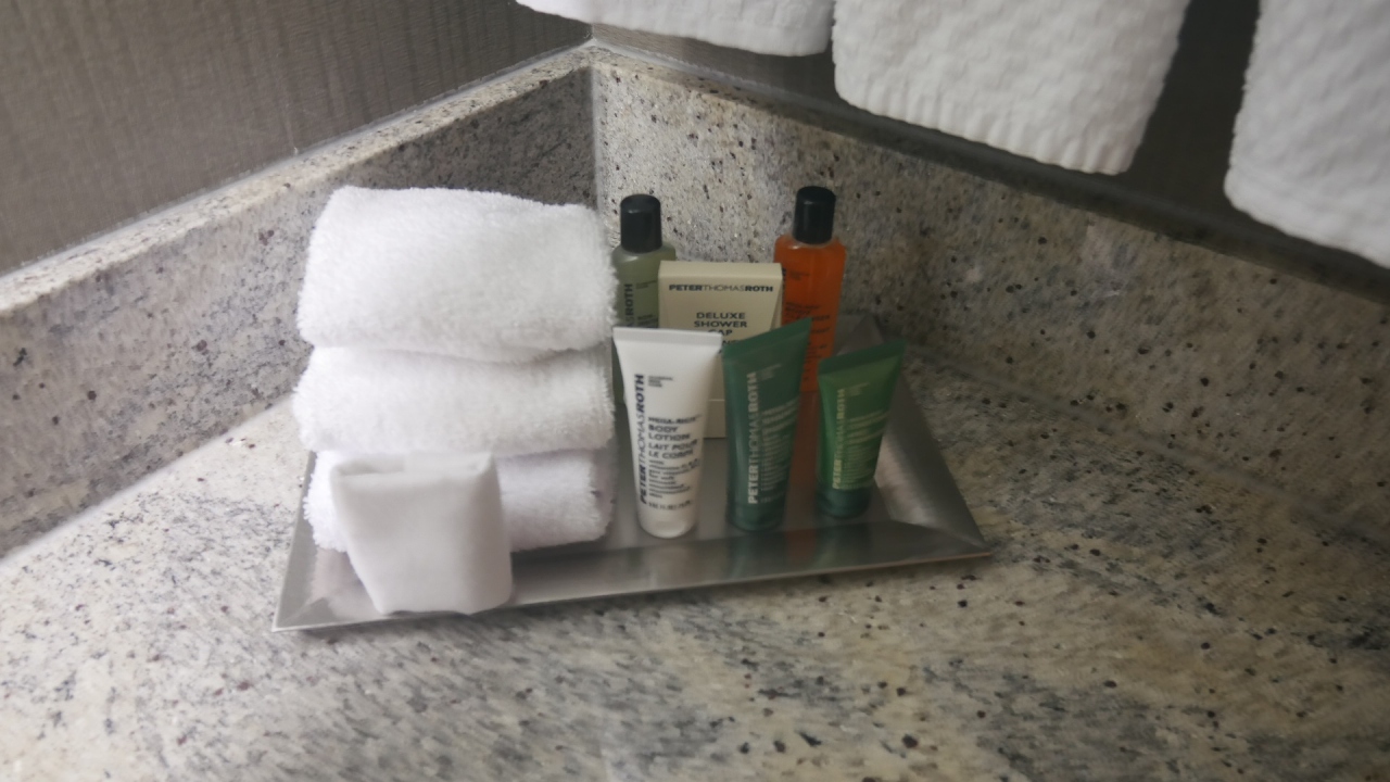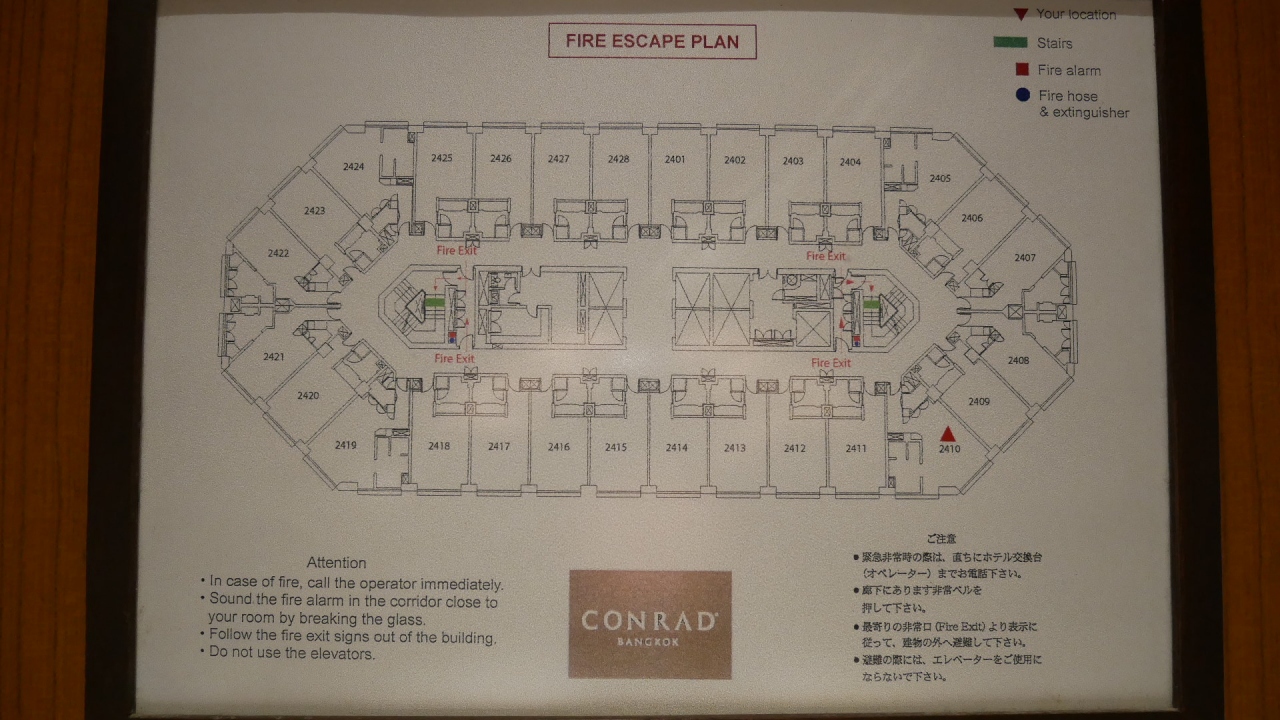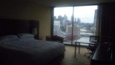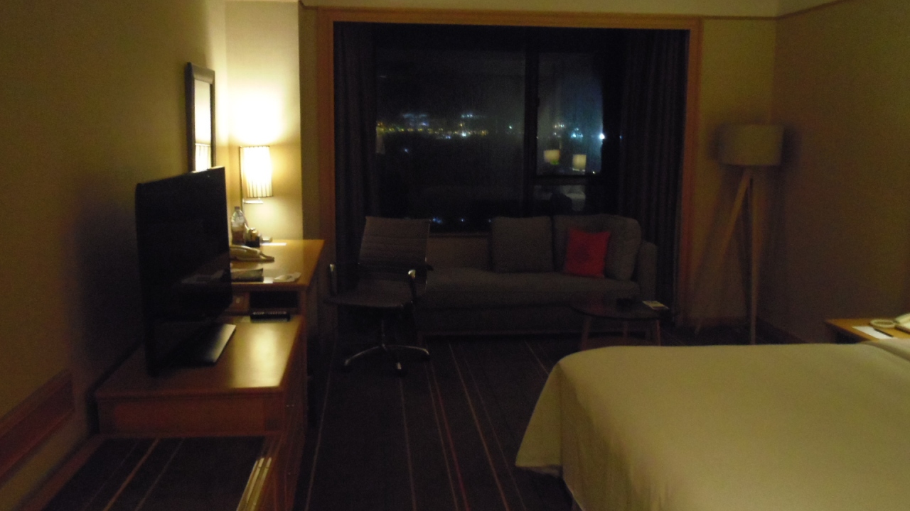 訳あって24階ですが、Hilton Honors Gold のおかげで、コーナー部屋(2405室)にアップグレードされました。