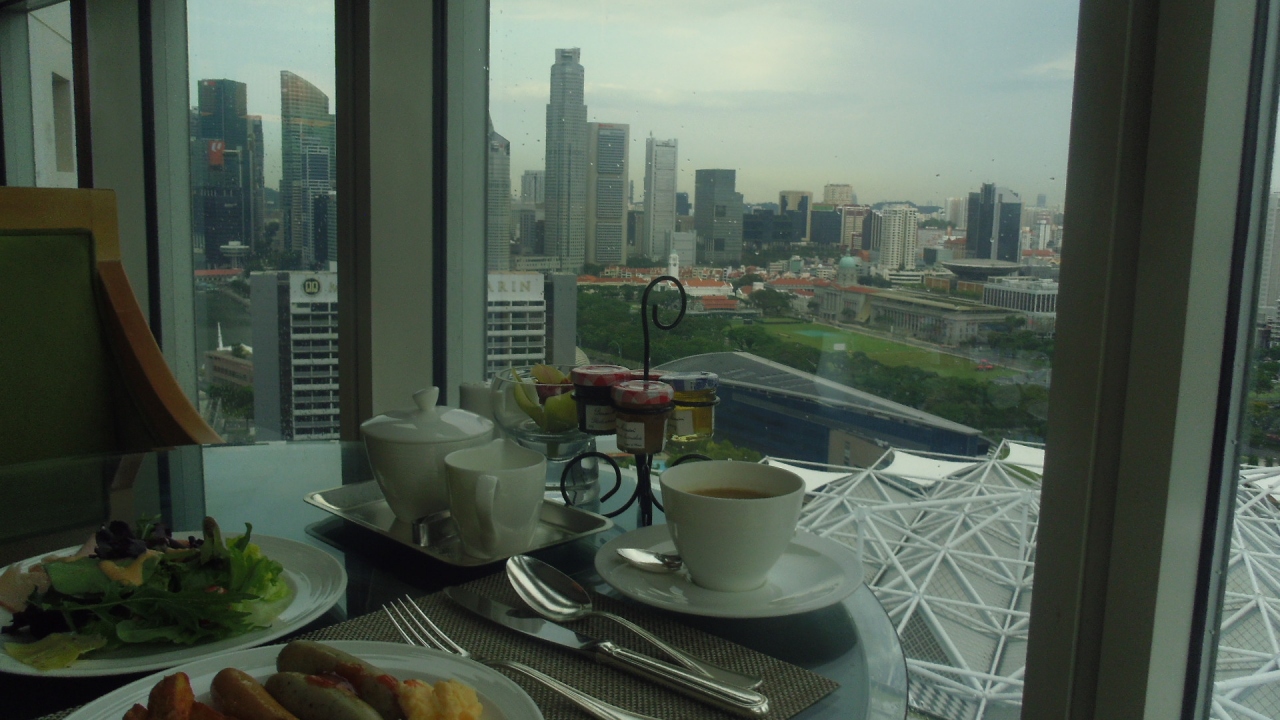 部屋は29階でマリーナ・ベイに向かっているほうだったので、マーライオンも見ることができました。