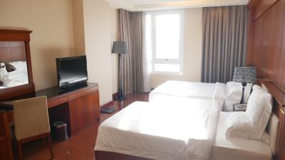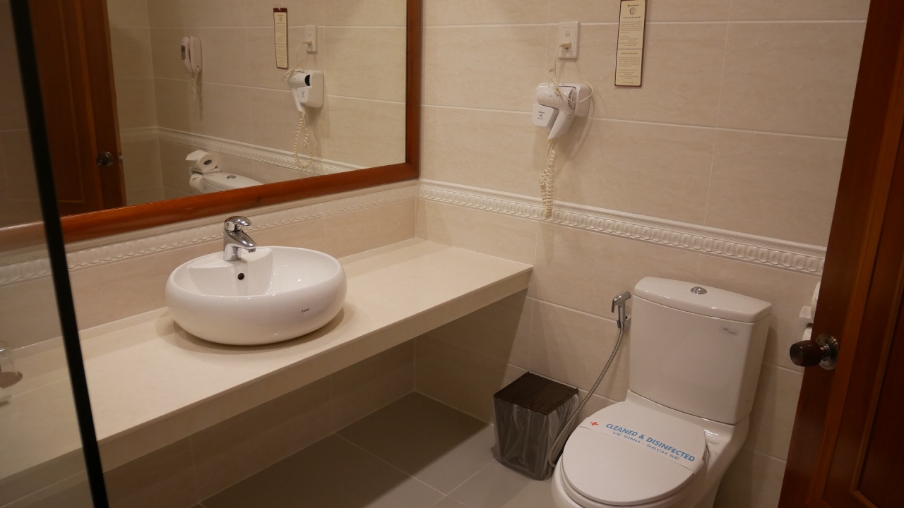 部屋が狭いのは仕方がなく、日本のビジネスホテルより少々広い感じです。