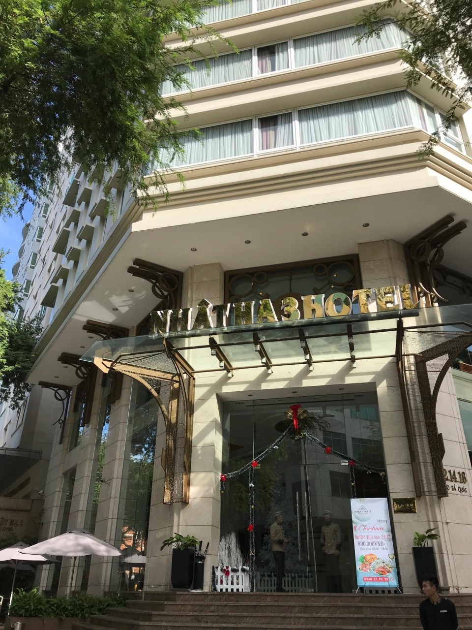 ベトナムのホテルなので間口が狭く、看板も大きくは出ていなかったので、すぐそばにタクシーで乗り付けましたが、見つけるまで時間がかかりました。