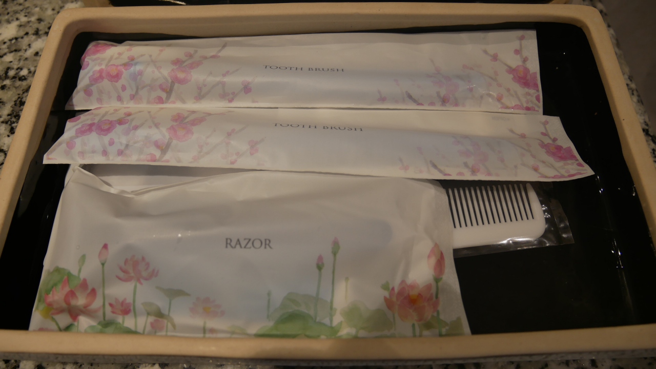 アメニティーは、歯ブラシ、くし、髭剃りあり。シャンプー、ボディーソープは備え付けの大きな容器の物でした。