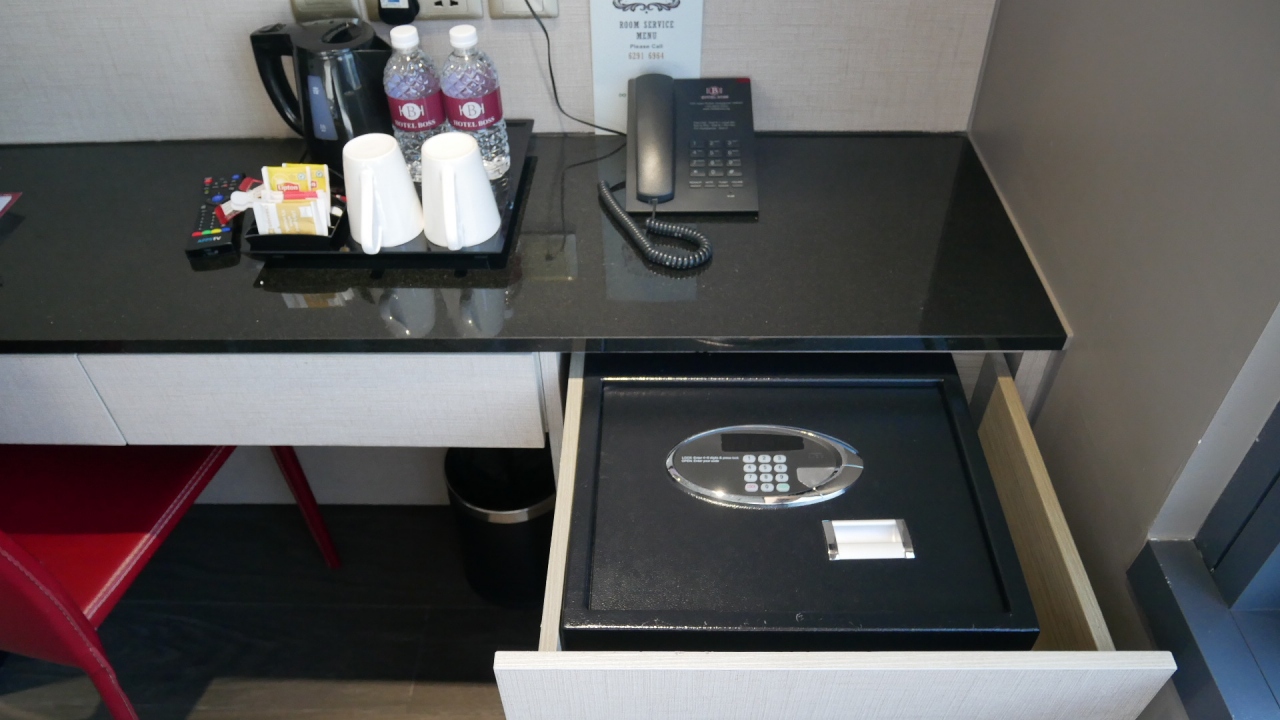 セイフティーボックスが妙なところにありますので探してみてください。