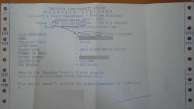 マレーシア航空 クアランプール経由タンソンニャット国際空港でロストバッゲージ(結果的にはディレイバッゲージ)です。