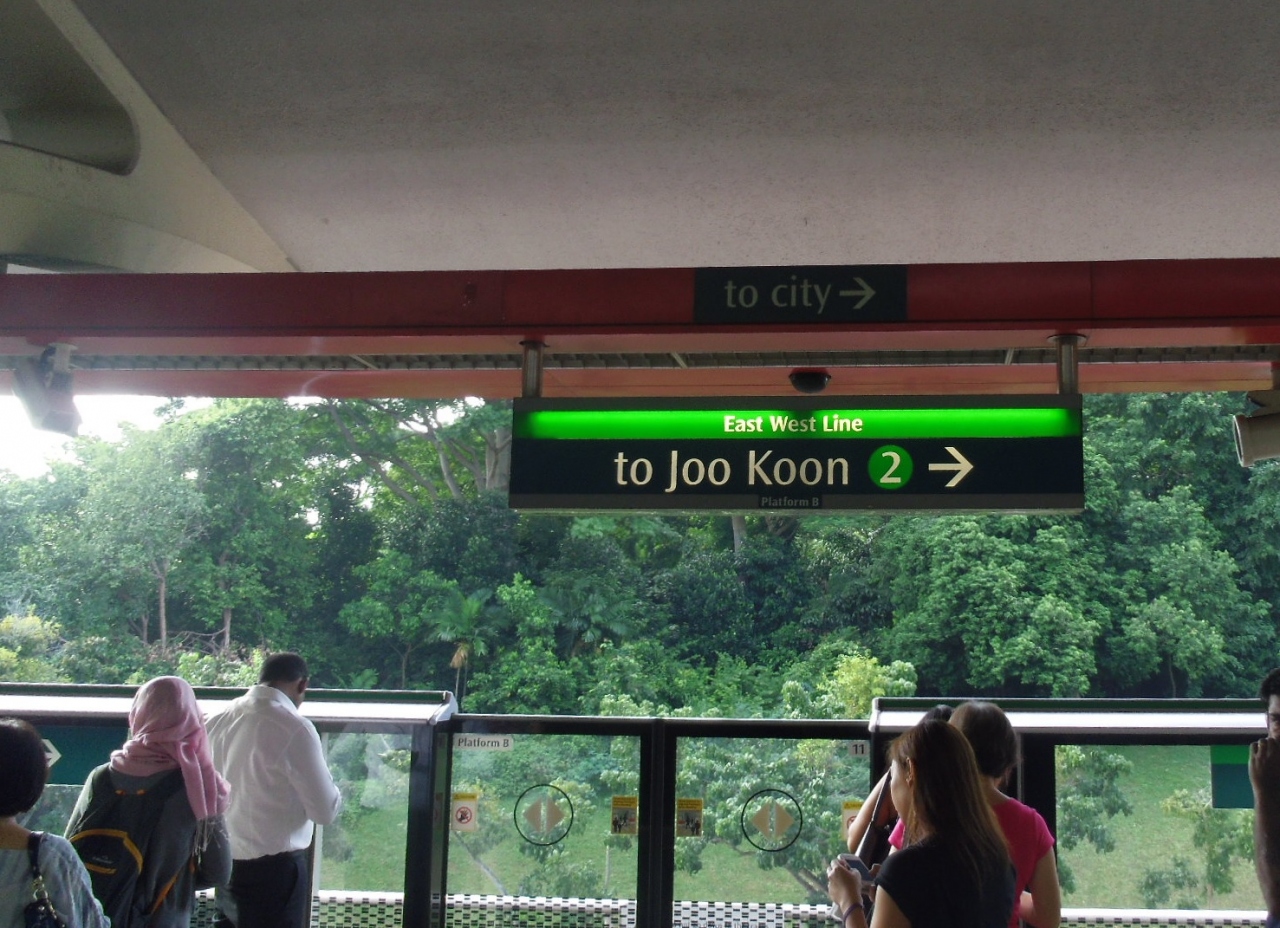 Changi Airport駅8時15分頃に出発、Tanah Merah駅まで10分弱でここまでは空いていました。到着して左側の扉から降り、向かい側のホームで乗り換えます。