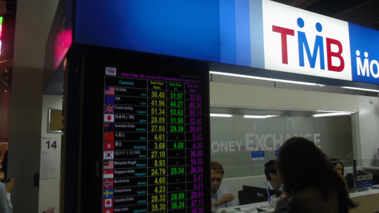 空港 2,889THB 入国審査のすぐあと。表示だけ見て退散。