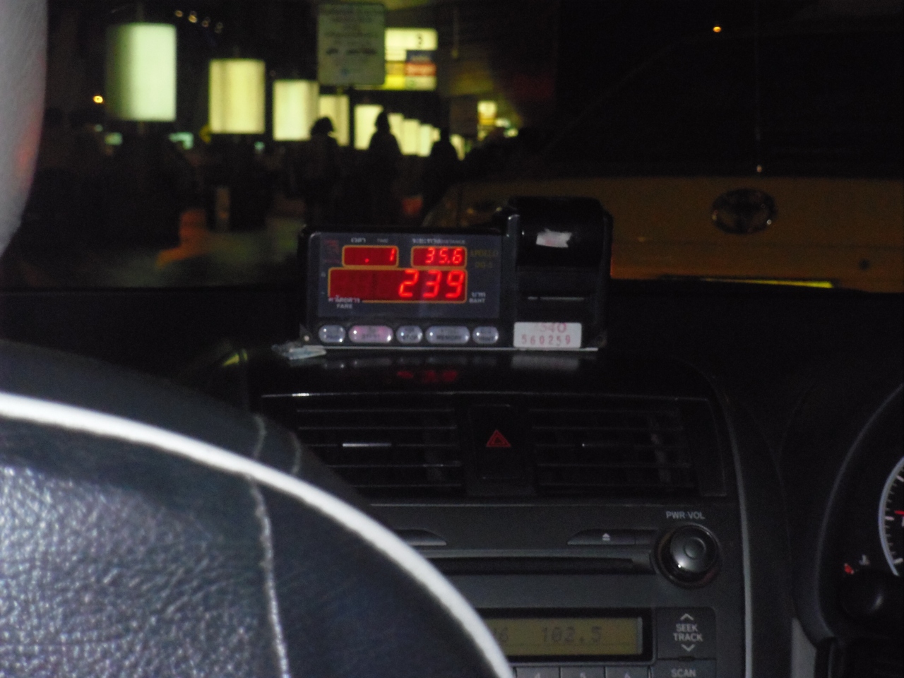 以前、シティーホール近くの別のホテルで、呼んでもらったタクシーで空港まで行った時は、ホテルとの提携で35SGD固定と言われ支払いましたが、今回は、メータで14.xSGDで精算ボタンで表示は21.xSGDとなり22SGD支払。乗車が6時前だったので5割増しとなったのだと思います。