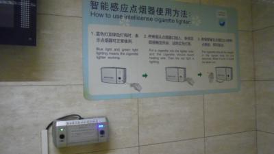 壁に点火用の機械があります。穴に煙草を差し込み吸うと火が点きますが、点きが悪いので何度か根気よく吸う必要があります。- 旅行時期
