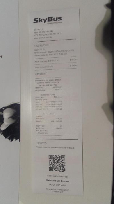 料金は片道 19AUD(クレカの請求では1,613円)、時間は30分弱でした。