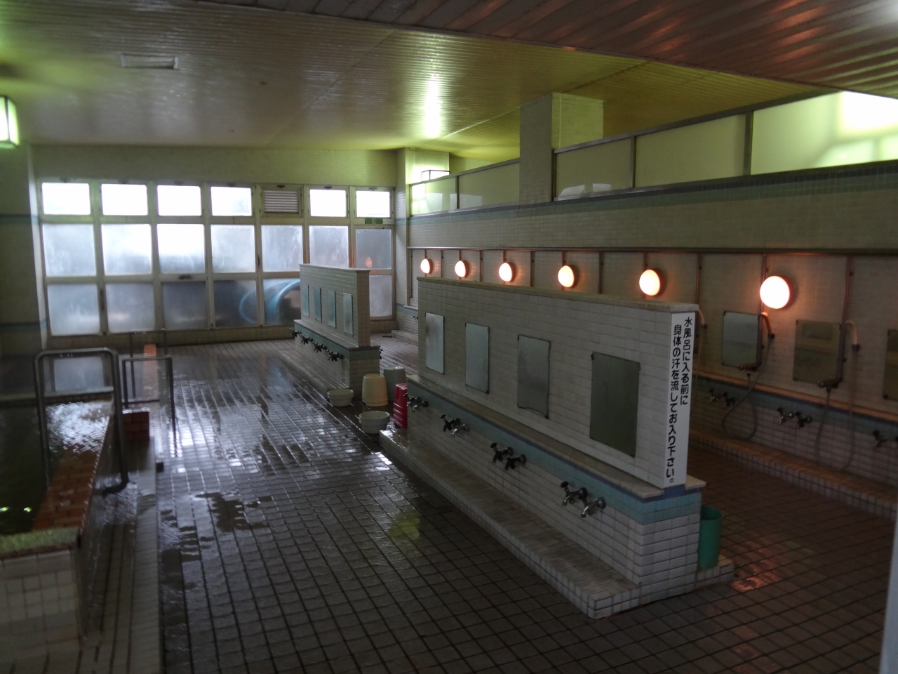 風呂は15時から18時まで。男風呂は4人が入れる浴槽が2つ。