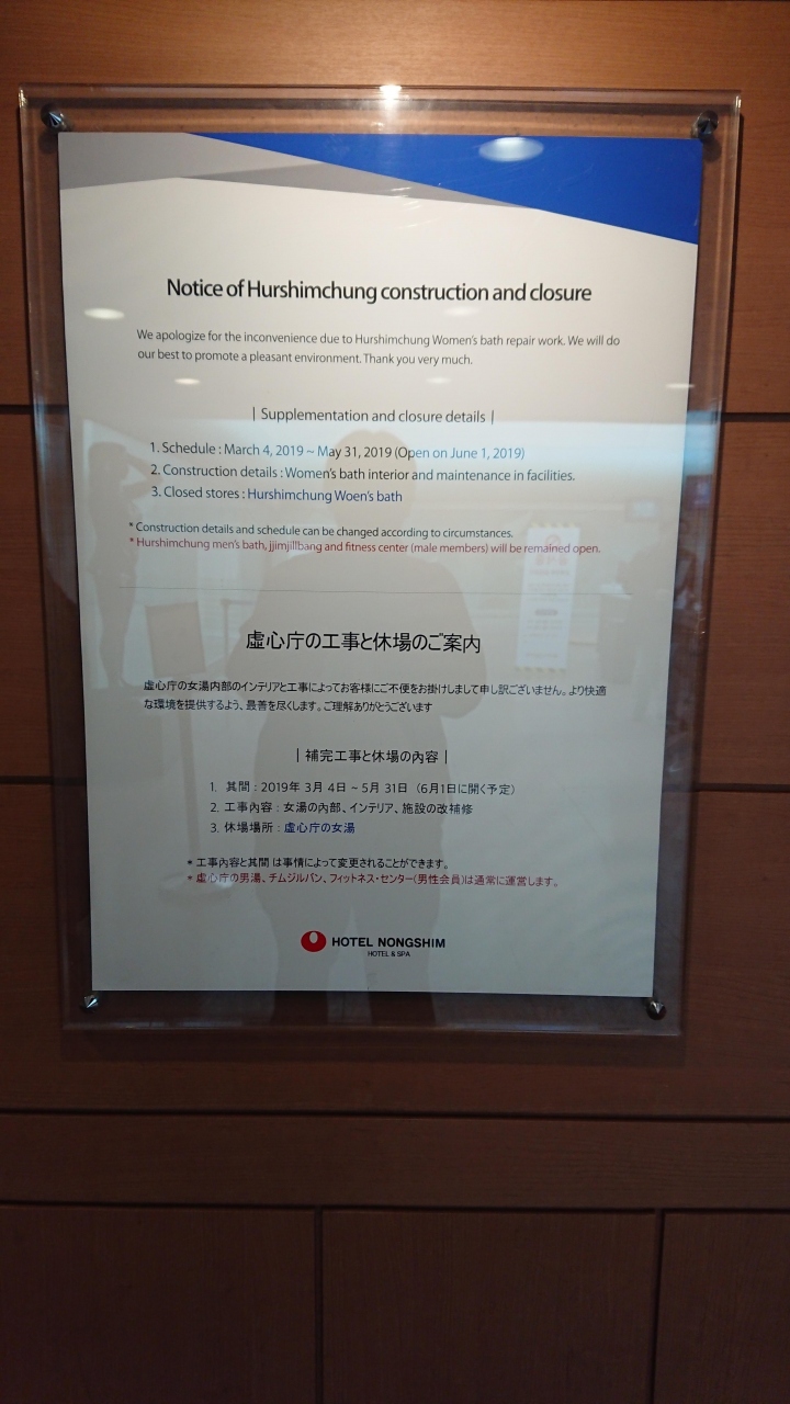 釜山虚心庁温泉女性風呂 改装中で入れません 注意 2019/3/4-5/31