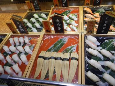 - 自分の食べたいにぎりを1貫ずつ選べる。昼時は出来立て。