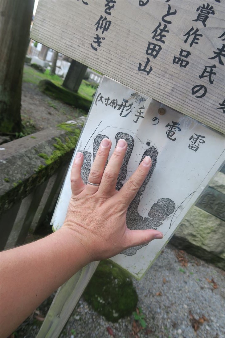 雷電の手形と銅像が有ります。特に、手形は、自分の手を重ねてみてその大きさに驚きが有りました。