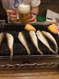 豊丸水産では、各自のテーブルにてシシャモやエビを焼いて食べる事ができてアツアツのまま、食べる事ができます。生ビールとの相性も抜群で食が進んでしまいますね、意外にエビがおいしいです。ぜひ、一度、食べてみてください。