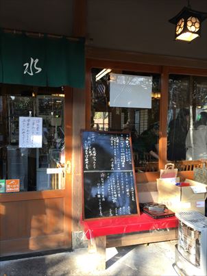 ふき味噌です。本店では、その場で温めてくれて、更に、そば茶と一緒に食べる事ができます。季節によっては、野沢菜も出たりします。