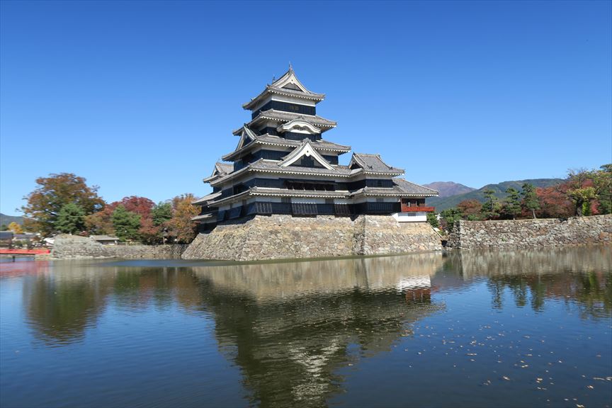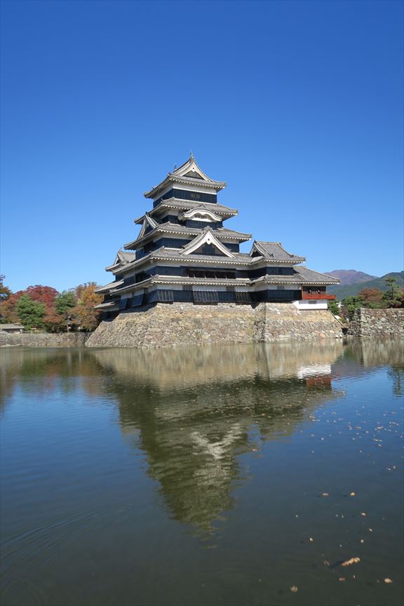 逆さ富士ならぬお城が見えます。 風の無い日だと更に、良いと思います。