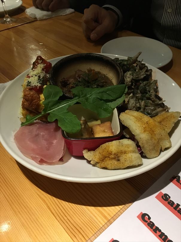 飲み放題に、サングリアロッソが有ります。このお酒とハムやきのこがとても相性が良くておすすめの一品です。