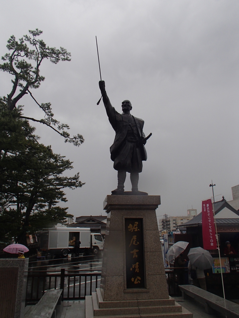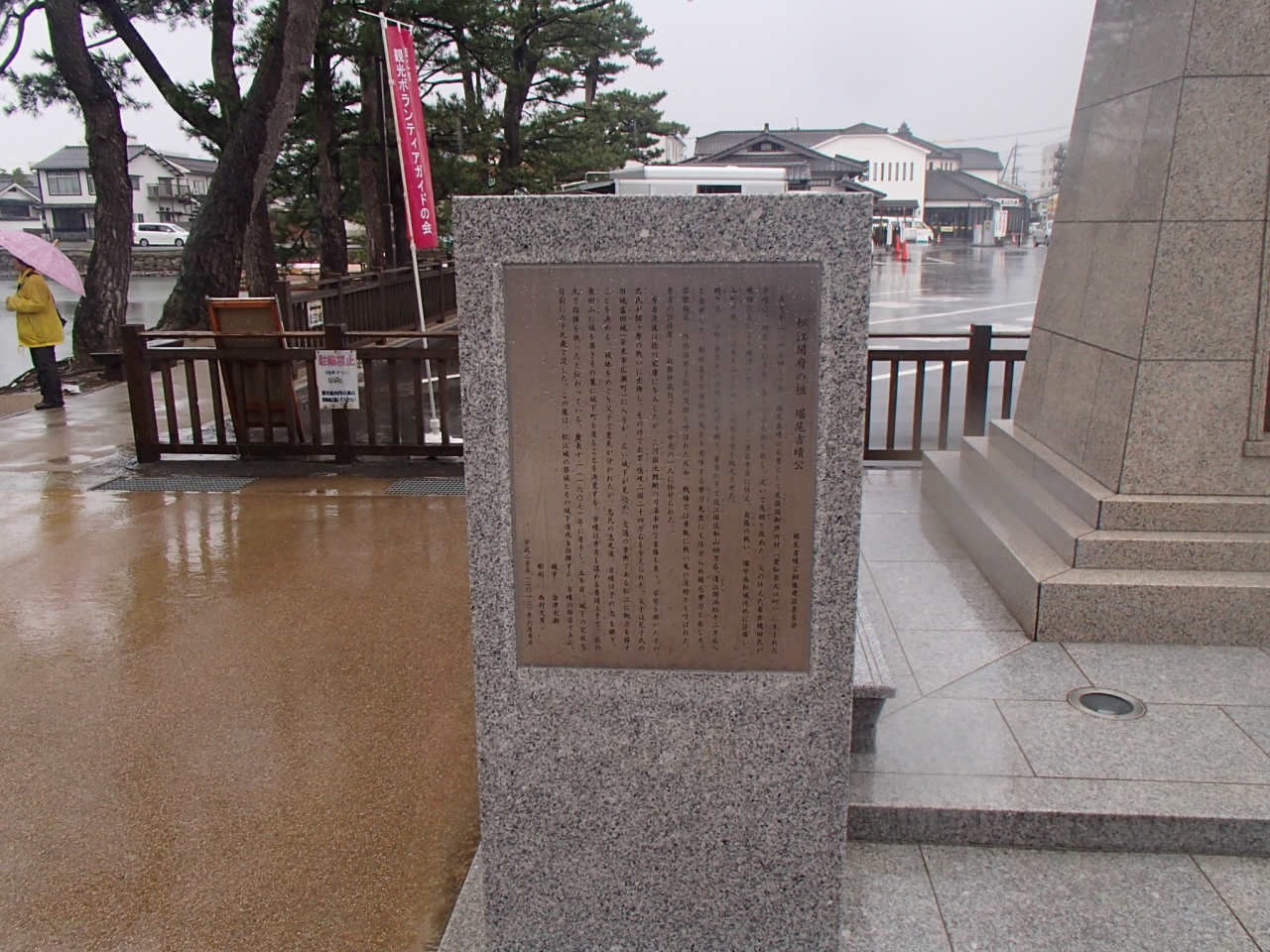松江城 (千鳥城) (まつえじょう (ちどりじょう))には、堀尾吉晴の銅像が有ります。この銅像は、松江城主で堀尾吉晴の生誕地なのであります。刻まれた文書を読んで歴史を勉強することをおすすめします。ぜひ、一度、見に行ってみて下さい。