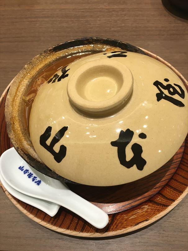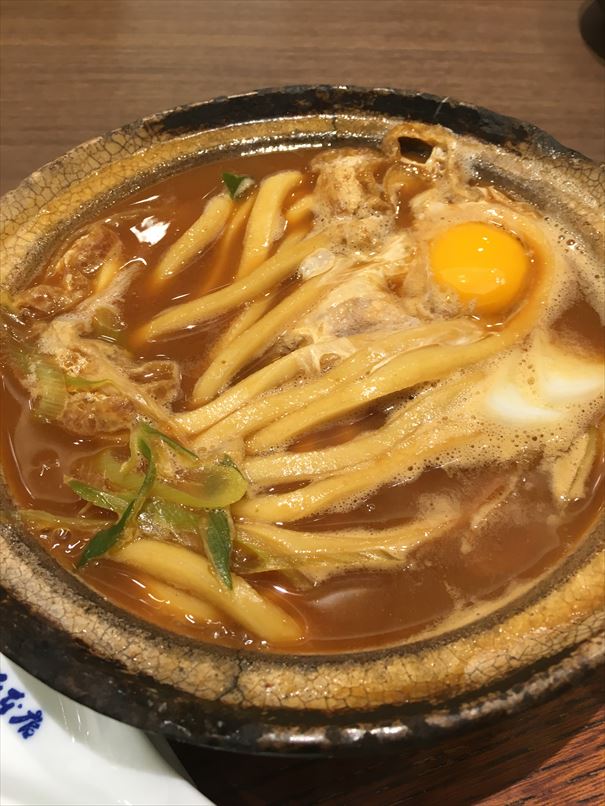 山本屋本店 エスカ店 (ヤマモトヤホンテン)のシンプルな味噌煮込みうどんです。食べ方として上蓋の上にうどんを乗せて冷まして、そして汁が跳ねるのを防ぐのを目的としています。ぜひ、一度、食べにいってみてください。
